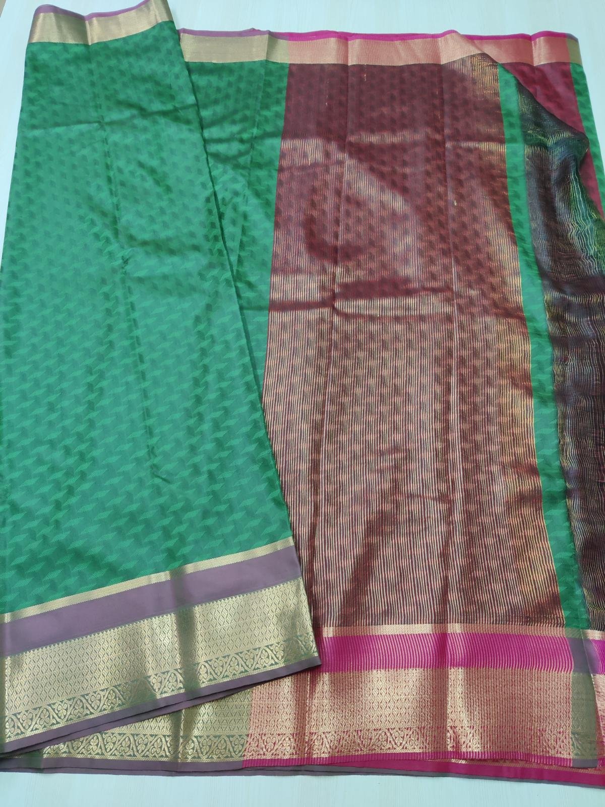 • Meticulously crafted with 3D embossed lightweight Kanchi semi silk