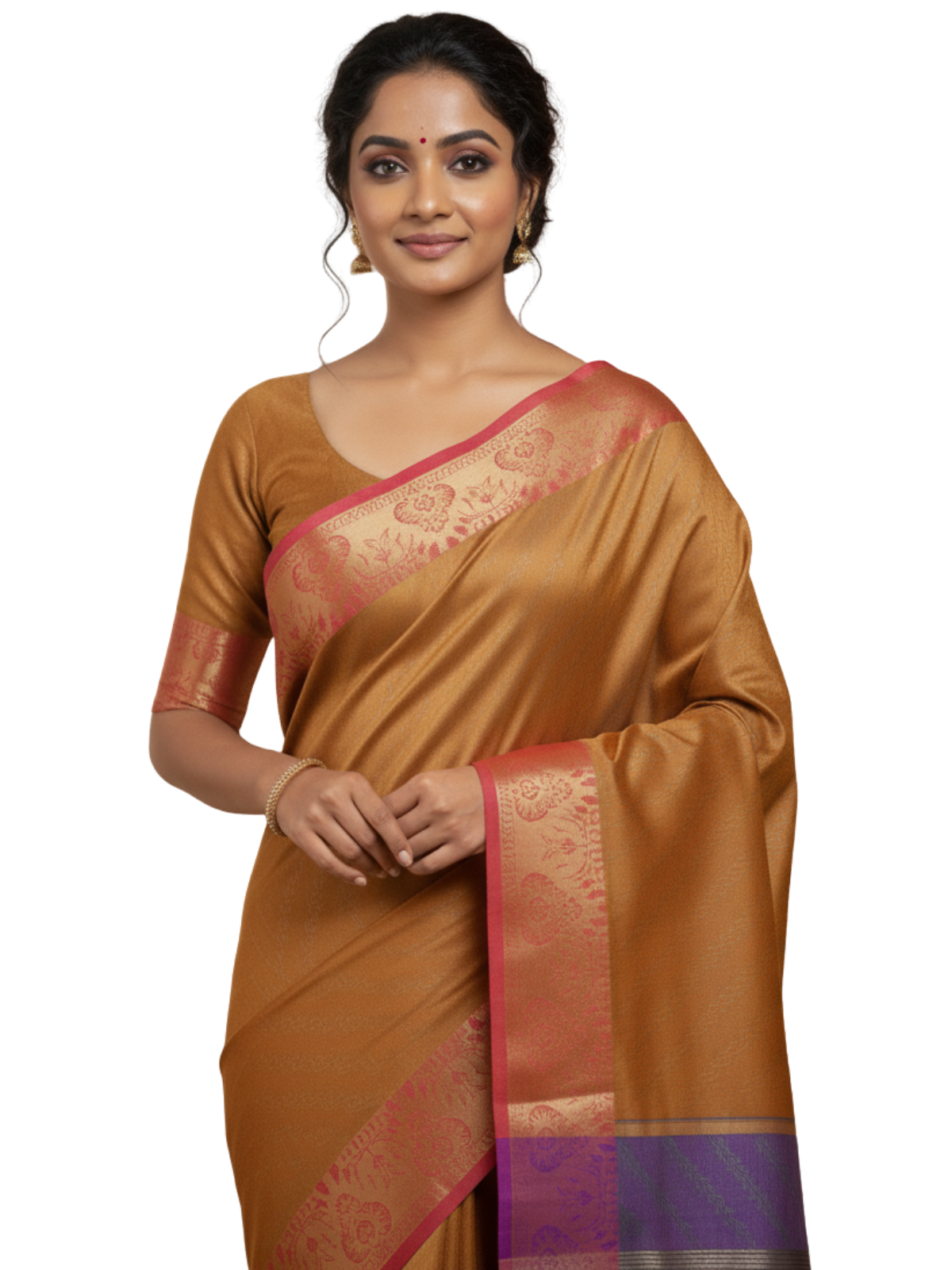 • Meticulously crafted with 3D embossed lightweight Kanchi semi silk