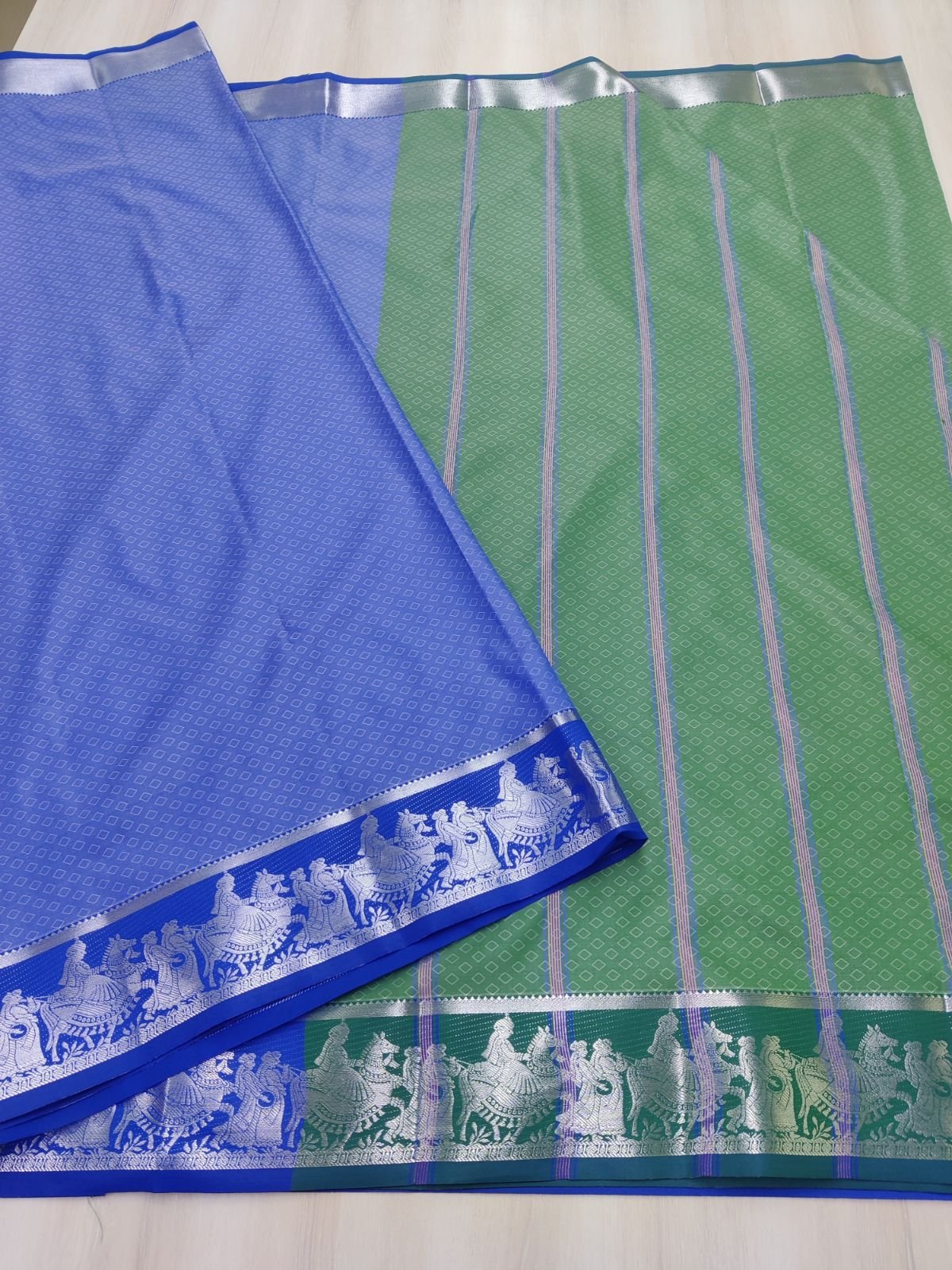 • Meticulously crafted with 3D embossed lightweight Kanchi semi silk