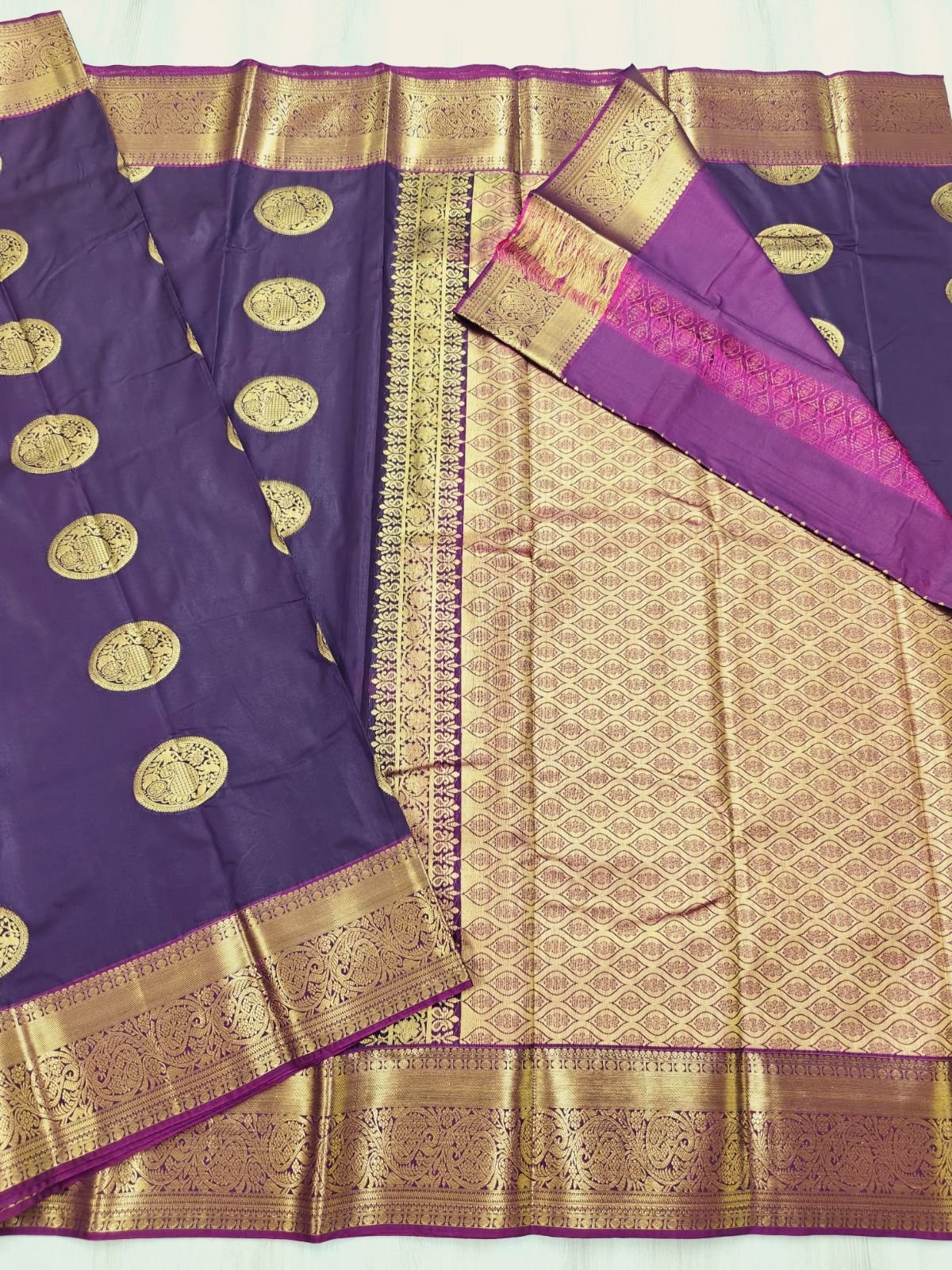 However, in the unlikely event that you receive a saree with defects/damages, you can contact us by whatsapp in 96555 63535 for an exchange in the same day of the delivery. No refunds. We will process the exchange of the saree as soon as we can.