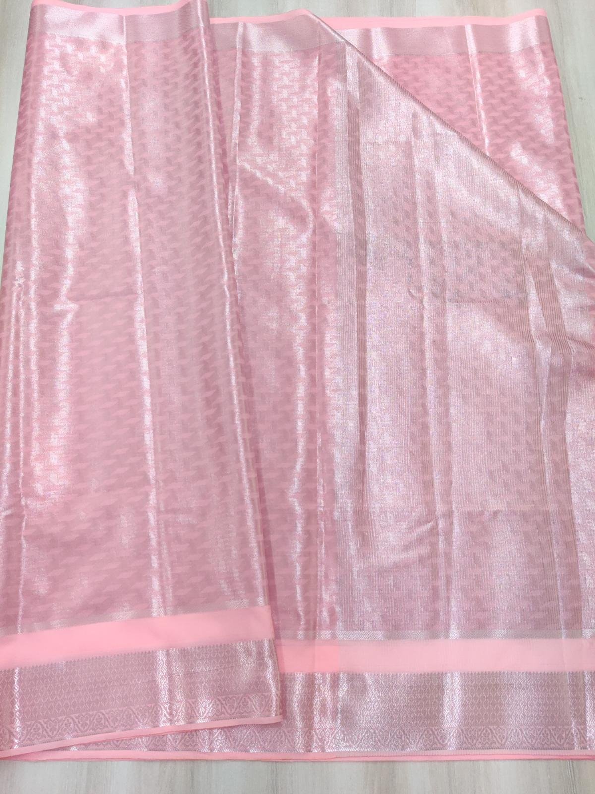 Elevate your style with our Premium Tissue Silk Saree exclusively designed by Nira.This type of saree made from a delicate blend of silk threads and metallic threads (often zari), giving it a sheer, shimmering, and elegant look. It is known for its lightweight feel, soft texture, and glossy finish, making it a popular choice for festive occasions and weddings.