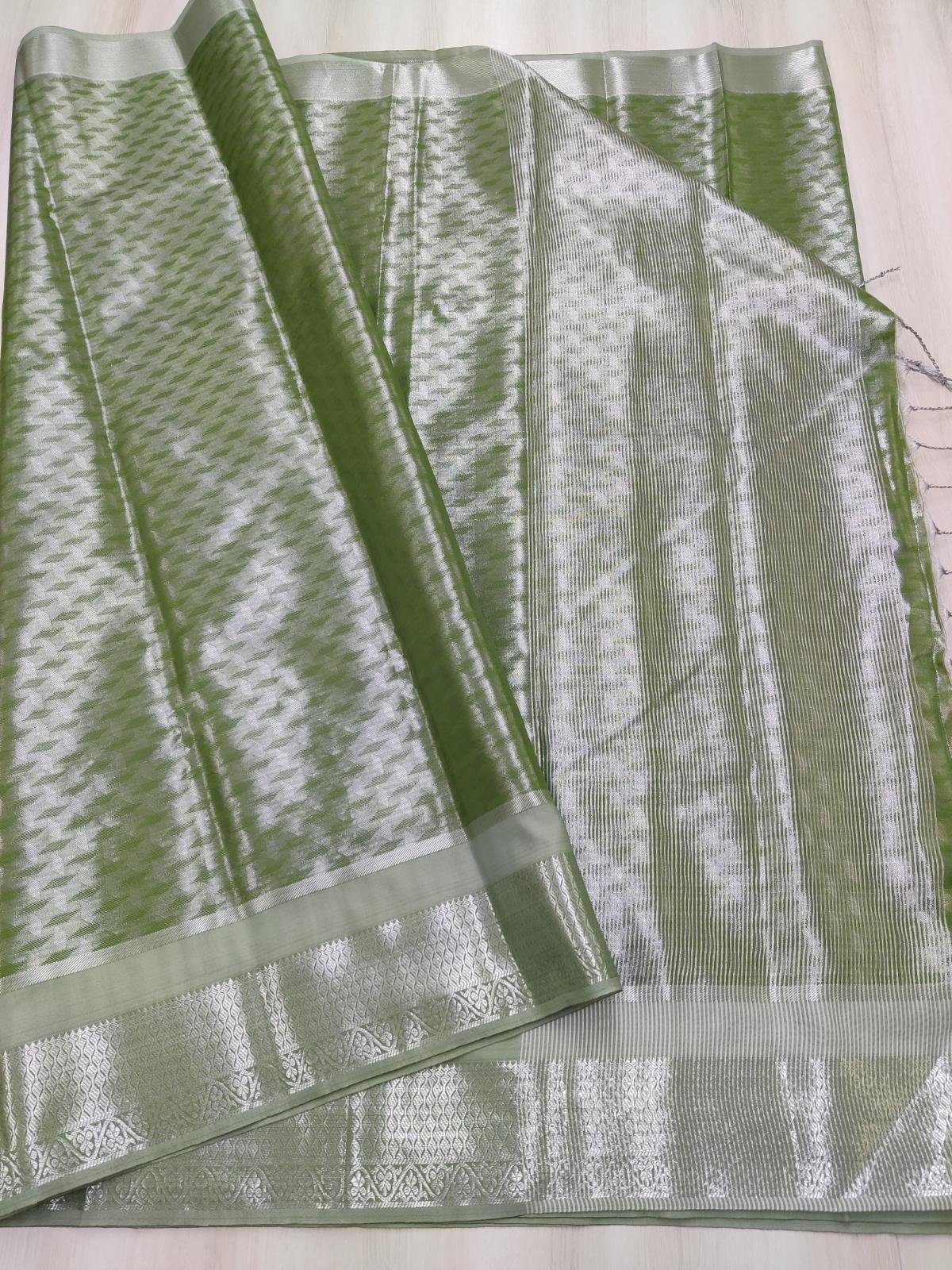 • Sheer Shine – Offers a metallic shimmer due to the use of zari or metallic threads.