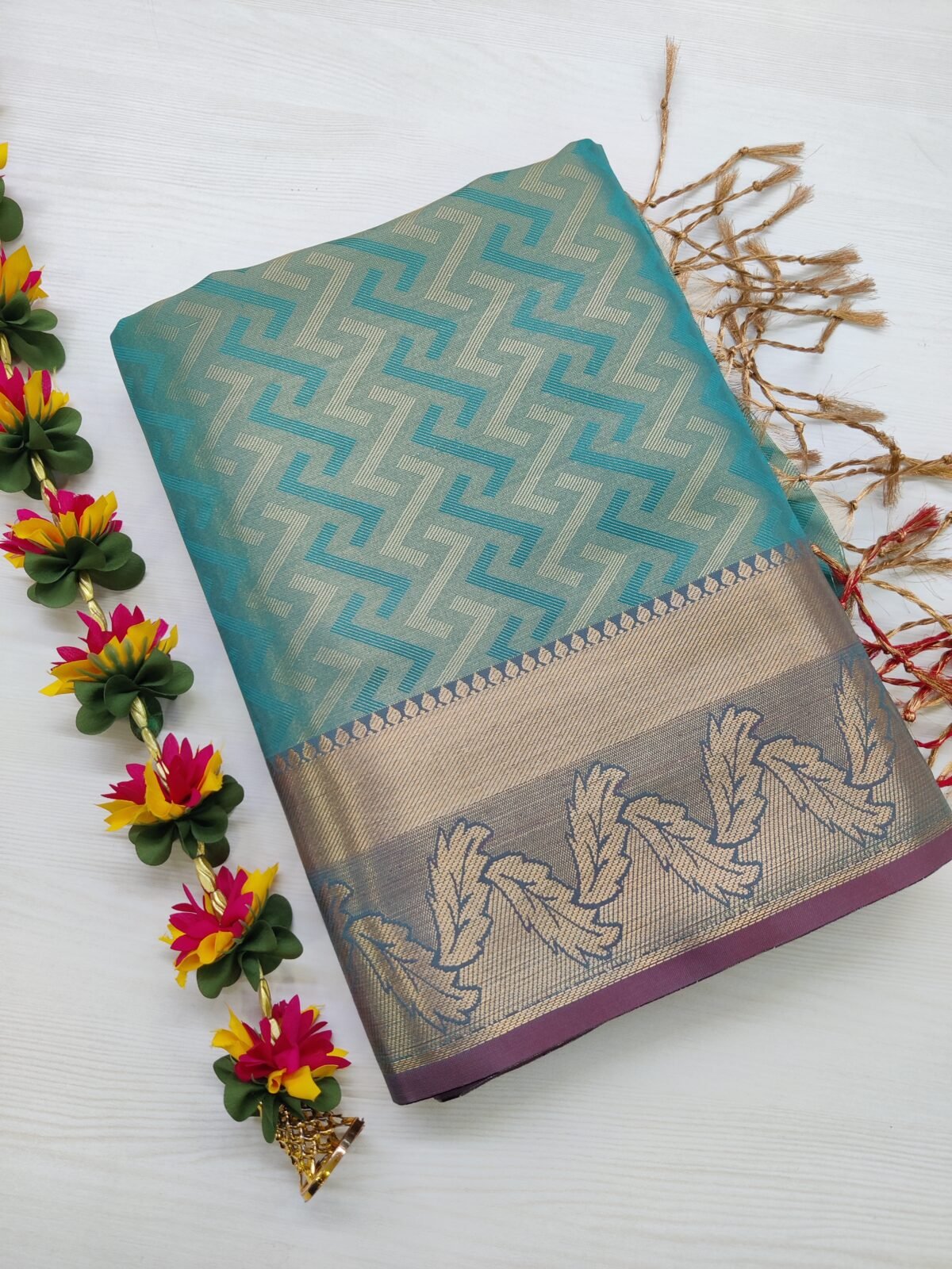• Sheer Shine – Offers a metallic shimmer due to the use of zari or metallic threads.