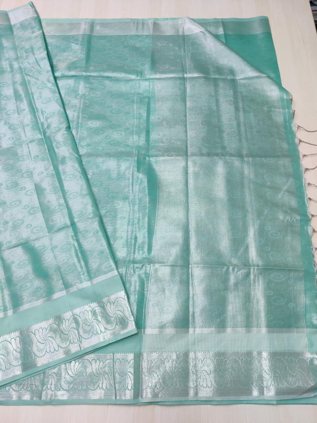 Elevate your style with our Premium Tissue Silk Saree exclusively designed by Nira.This type of saree made from a delicate blend of silk threads and metallic threads (often zari), giving it a sheer, shimmering, and elegant look. It is known for its lightweight feel, soft texture, and glossy finish, making it a popular choice for festive occasions and weddings.