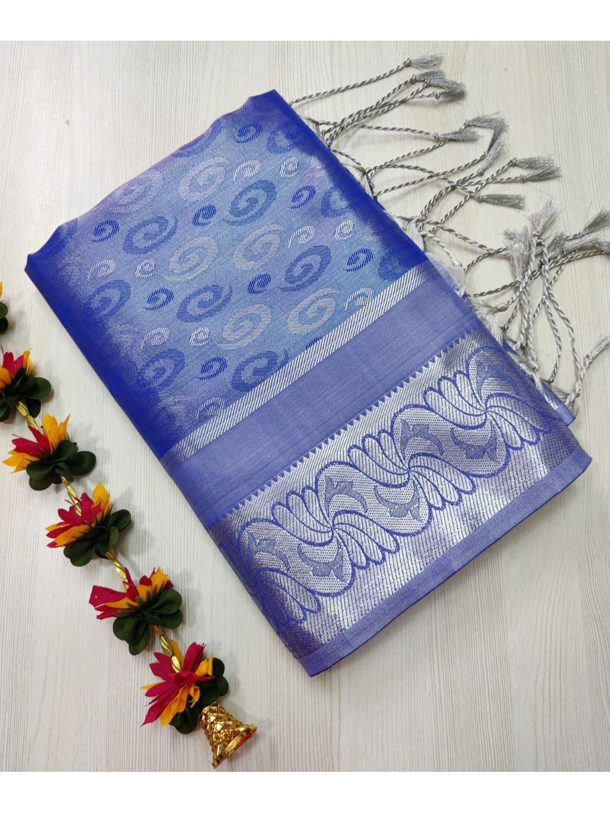 Elevate your style with our Premium Tissue Silk Saree exclusively designed by Nira.This type of saree made from a delicate blend of silk threads and metallic threads (often zari), giving it a sheer, shimmering, and elegant look. It is known for its lightweight feel, soft texture, and glossy finish, making it a popular choice for festive occasions and weddings.