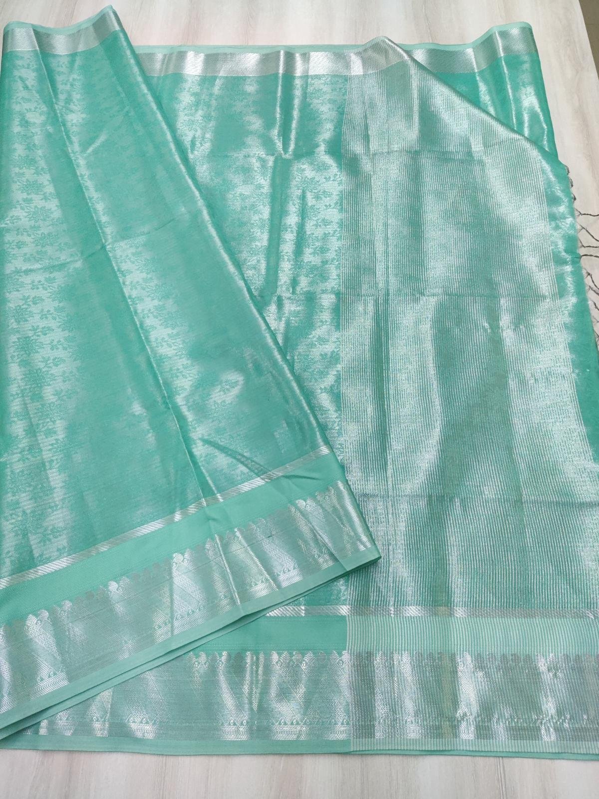 Elevate your style with our Premium Tissue Silk Saree exclusively designed by Nira.This type of saree made from a delicate blend of silk threads and metallic threads (often zari), giving it a sheer, shimmering, and elegant look. It is known for its lightweight feel, soft texture, and glossy finish, making it a popular choice for festive occasions and weddings.