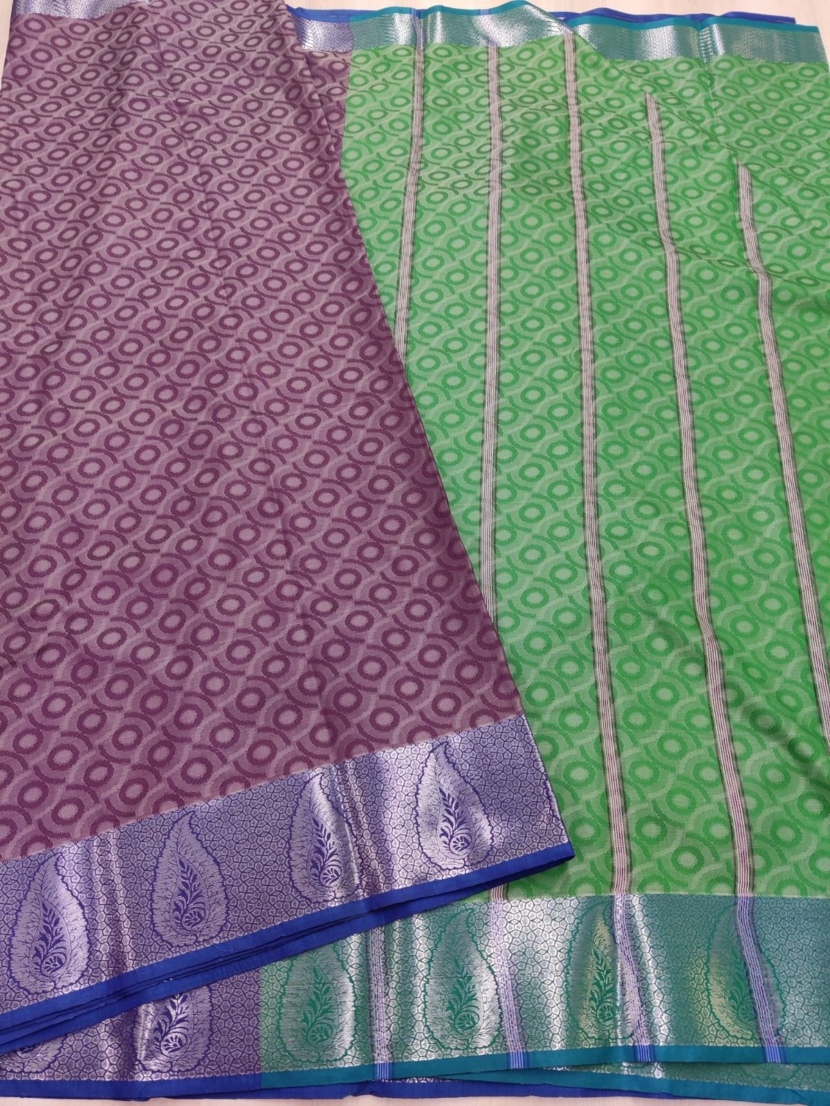 - Meticulously crafted with 3D embossed lightweight Kanchi semi silk